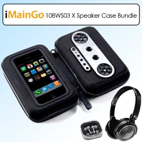 iMainGo 10BWS03 X Portable Speaker Case Bundle With Coby CV215 Folding Deep Bass Headphones Isolation Jammerz Earphones Combo For iPhone iPod Details :